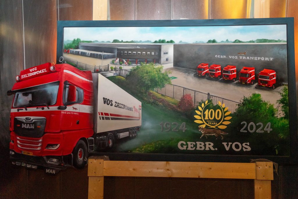 Zaterdag 28 september was het zover. In de middag was er voor relaties en andere genodigden een receptie en ’s-avonds een feest ter ere van het 100-jarig bestaan van Vos Transport.
